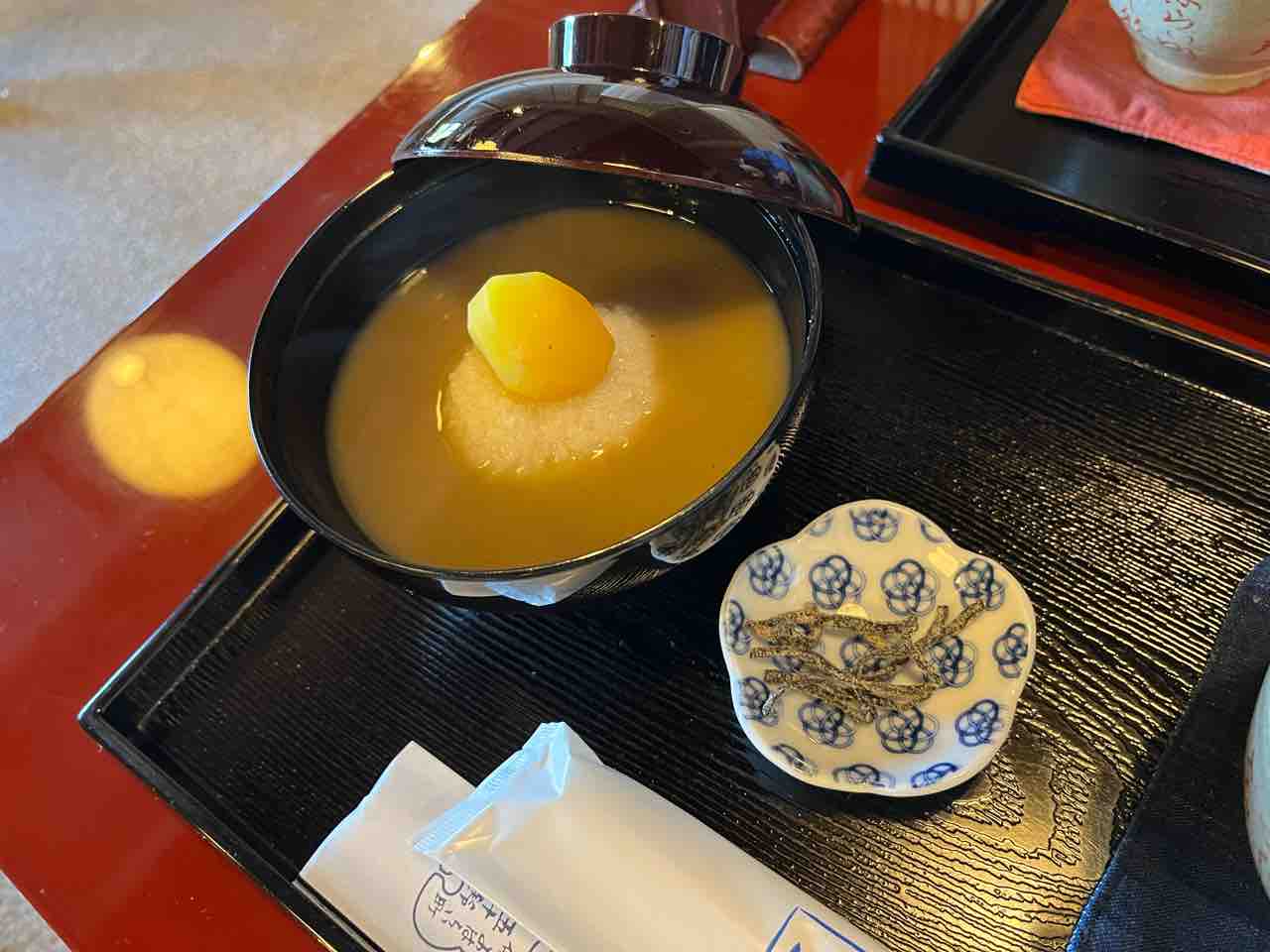 黒豆粟ぜんざい、年越し饅頭、赤福@201912五十鈴茶屋