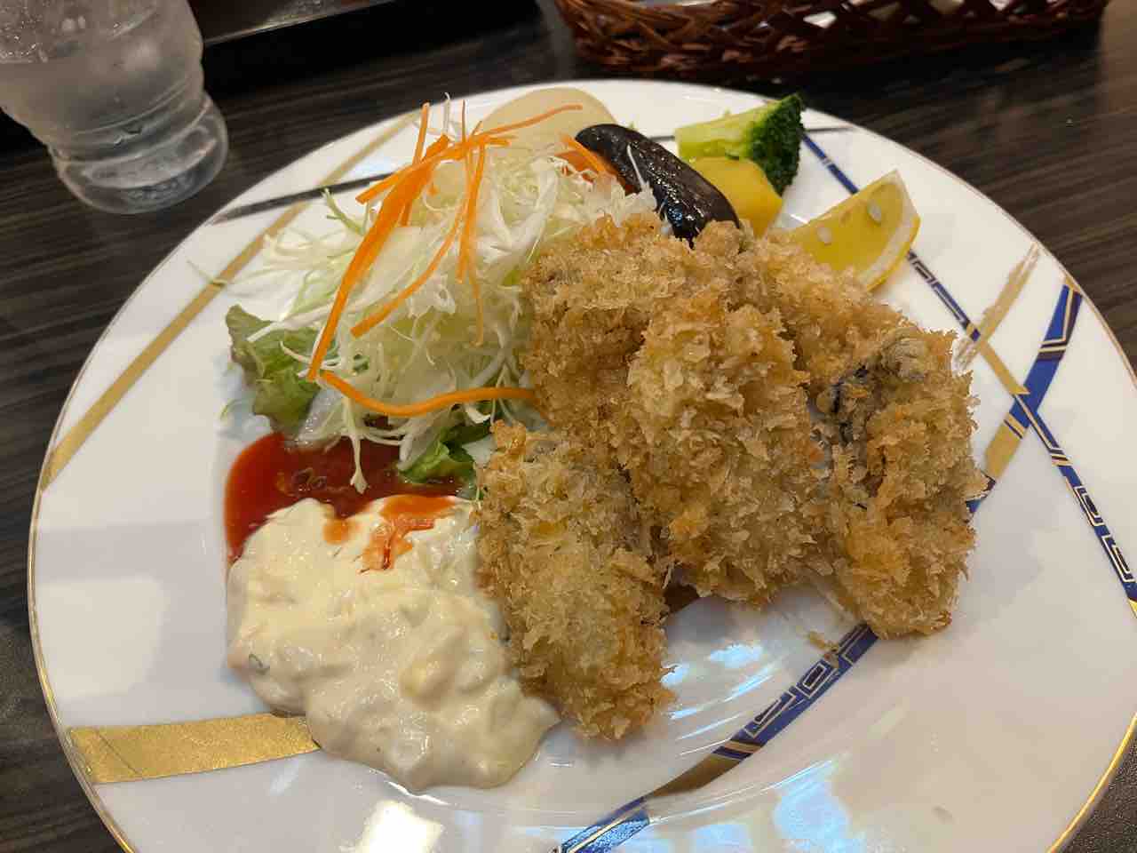 タルタルソースにケチャップがまた素敵です。アタクシはウスターソースにケチャップでいただき、人の皿に手を伸ばしてきた奥様はタルタルソースで召されていました。