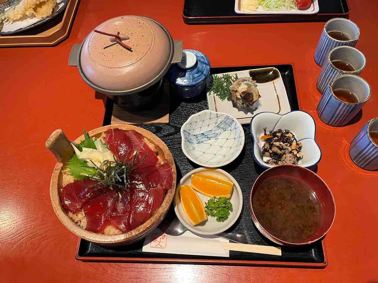 茶碗の手こね寿司に赤だし。十二分に三重県を楽しめる一品です。