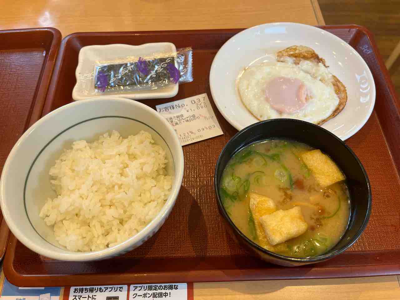 さらに目玉焼き朝食290円をお願いいたしまして。