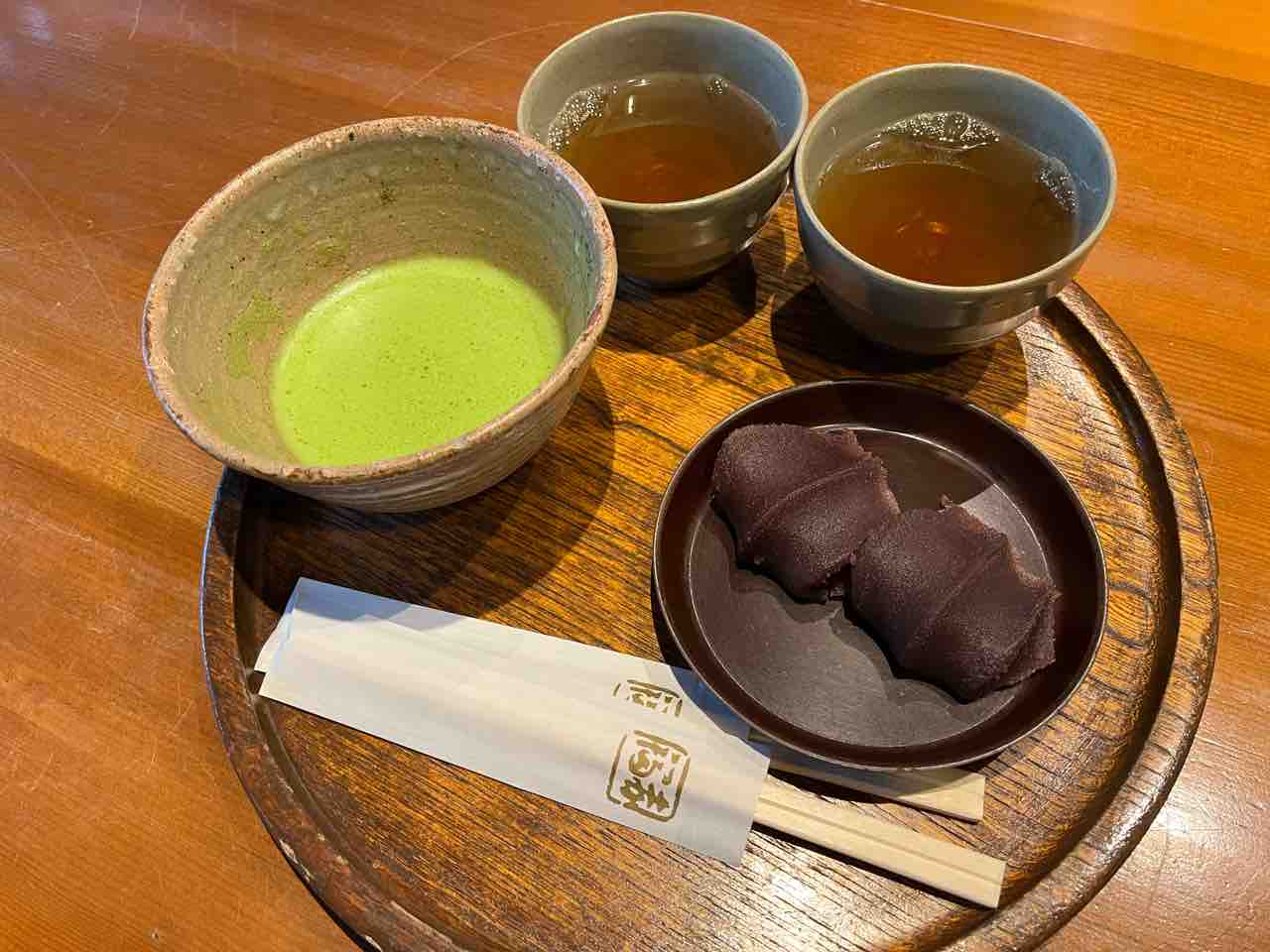 赤福お抹茶セット。ほうじ茶も付いてきます。