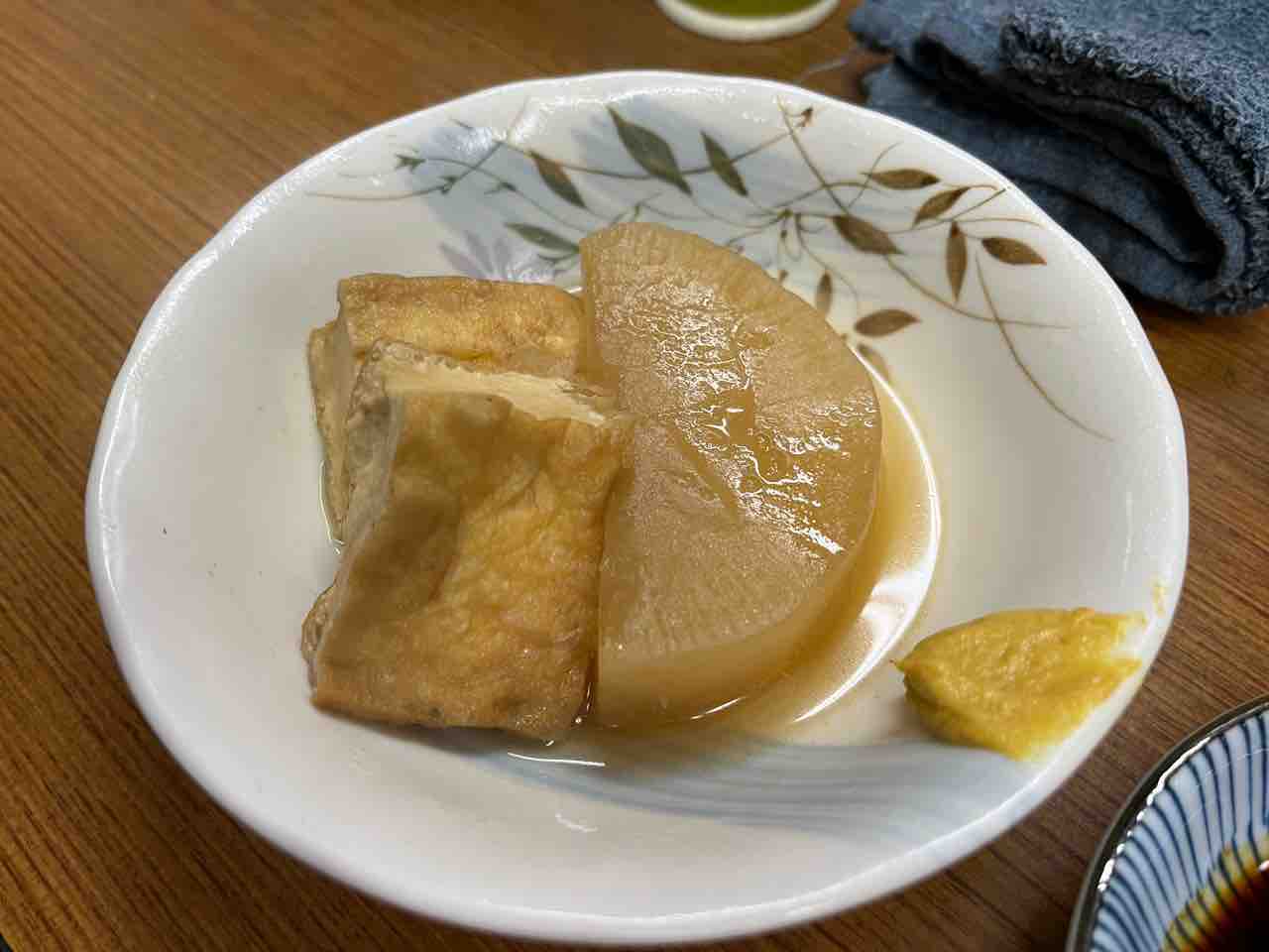 実はこの日はおでんを購入しているので、できれば避けたかったんですが、魚源さんの大根煮がまた旨いんですよね。つい大根半分と厚揚げ半分お願いしました。