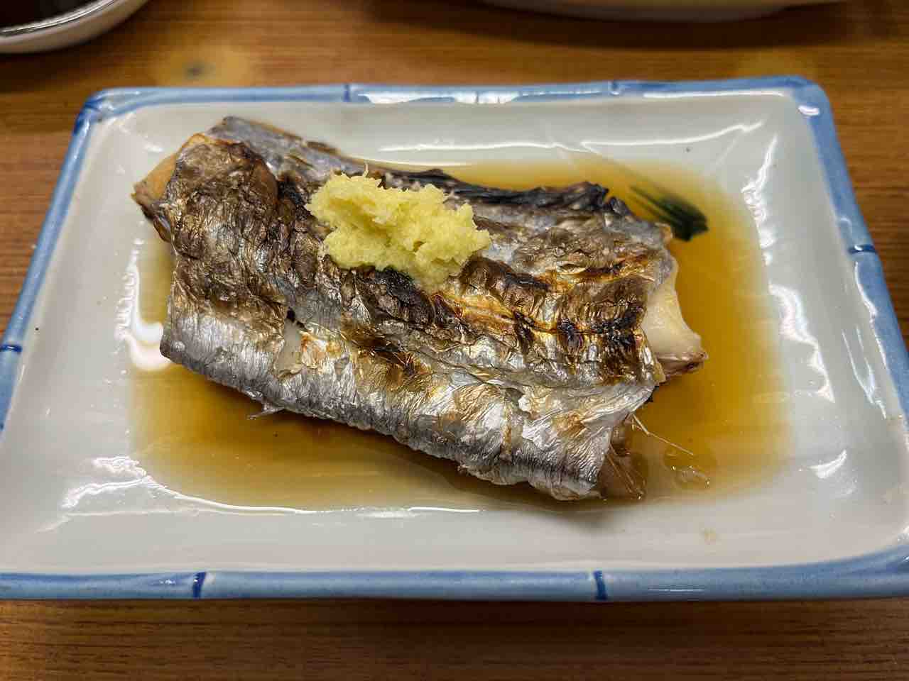 焼魚にはやっぱり三杯酢!炭火の焼魚が旨いのは間違いないんですが、さらに三杯酢が旨味を引き立て、後味を爽やかにしもう一口!っと…、今日はこんなんばっかりですな。