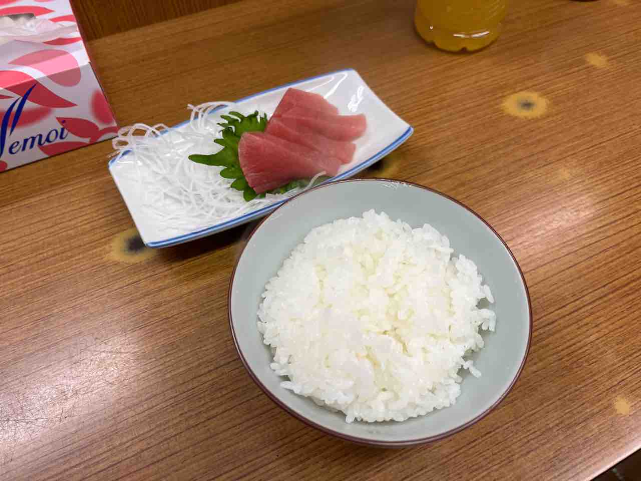 何も言わずに座れば出てくる真ん中の鮪にごはん。