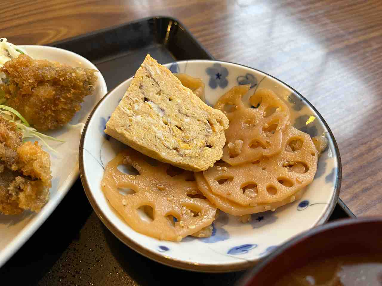 道風名物の卵焼きに、れんこんの煮物。