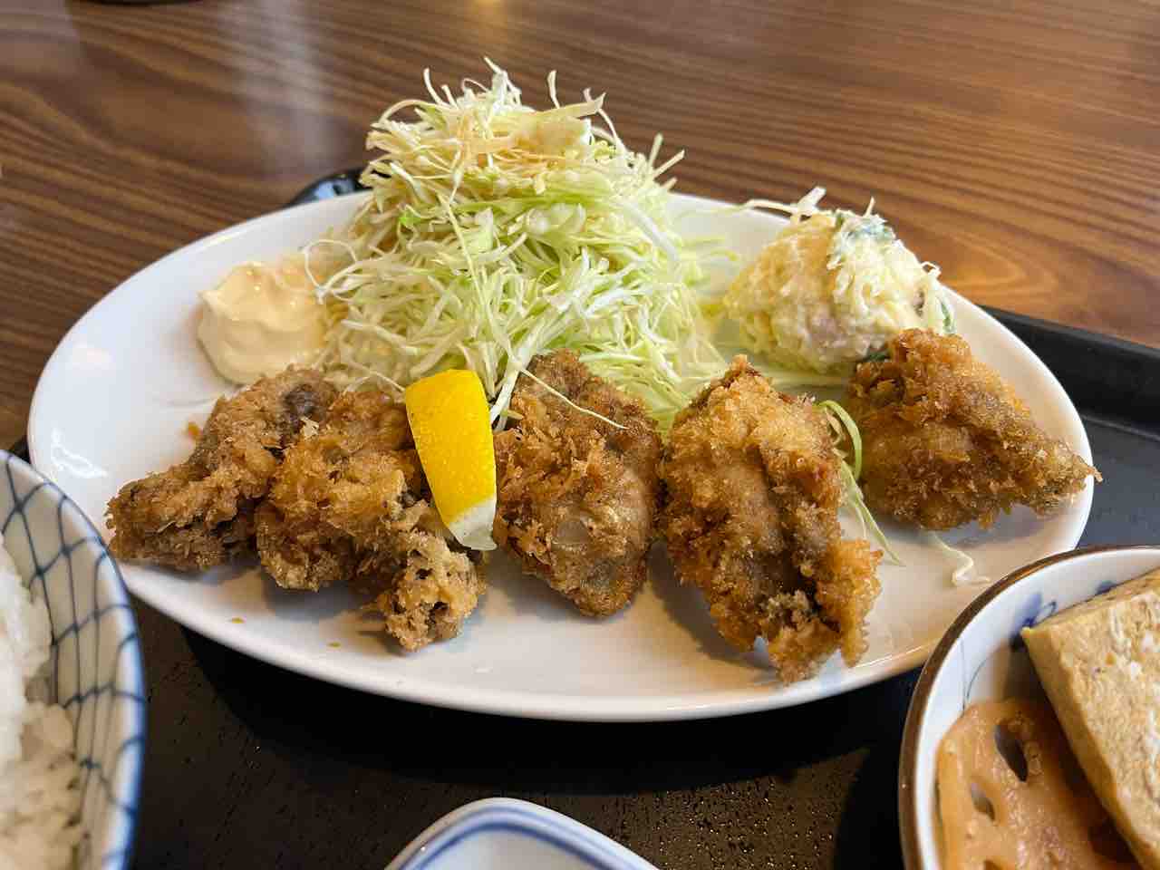 せっかく愛知県でカキフライを食べるんだからケチャップがほしいところですが…、これ以上贅沢を言っちゃいけません。