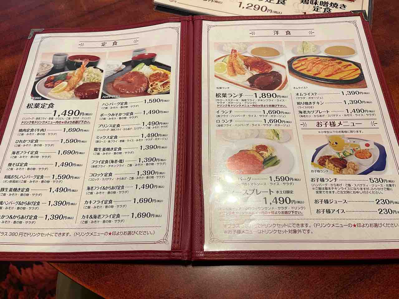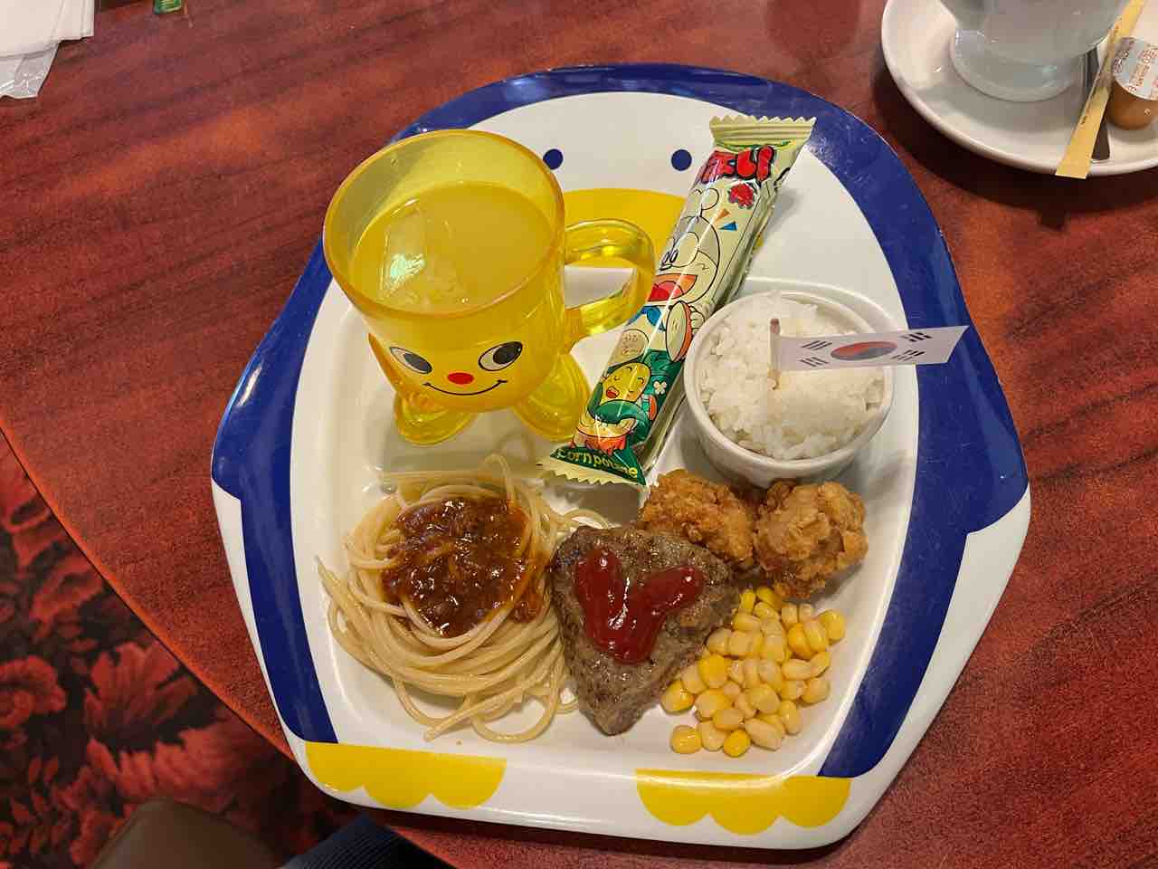 松葉定食、不明(イランチ?)、お子様ランチ、チョコレートパフェ@プリンス松葉201805