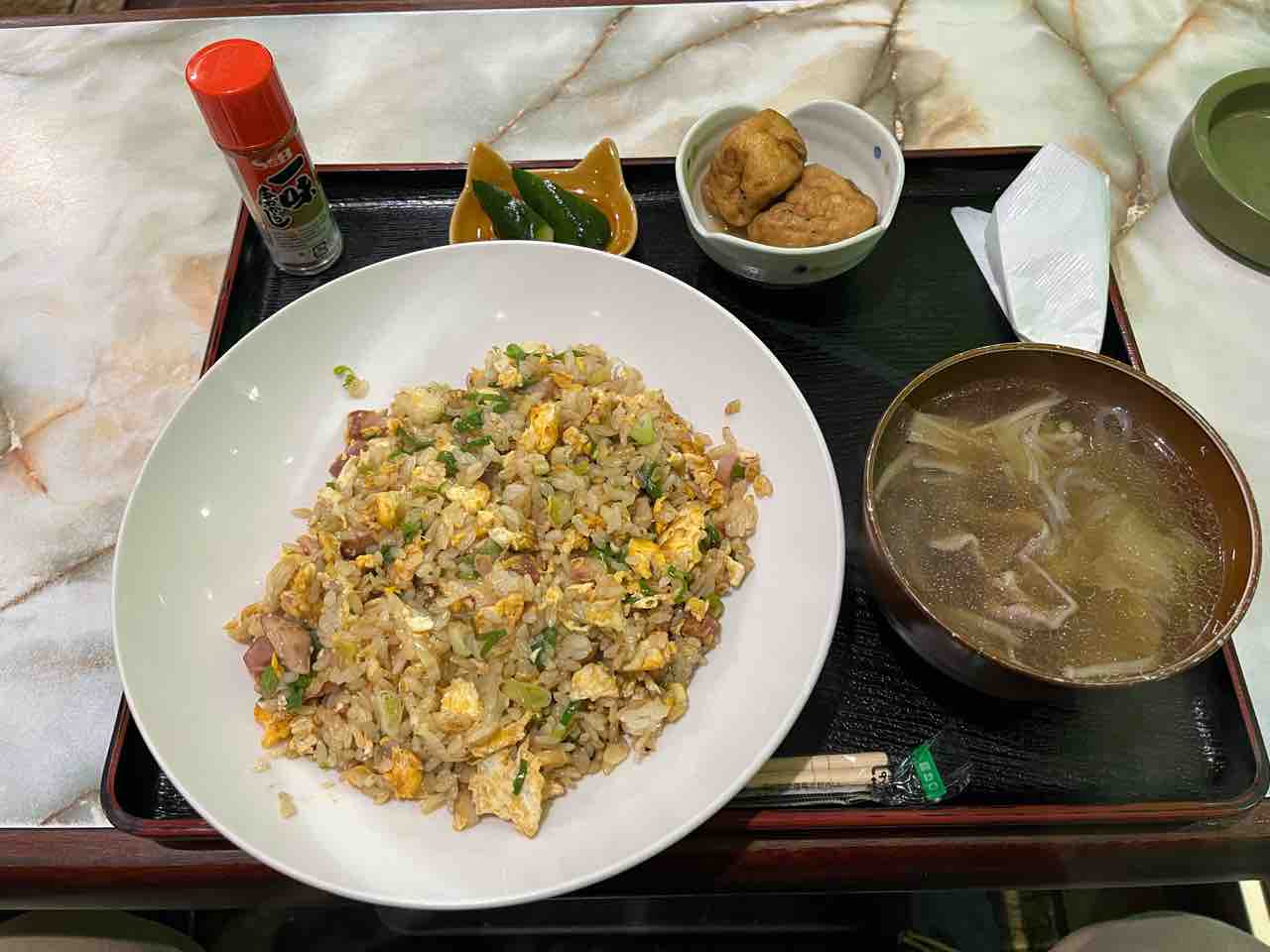 本職の会話をBGMにしばし待っていると提供される朝定(炒飯)。