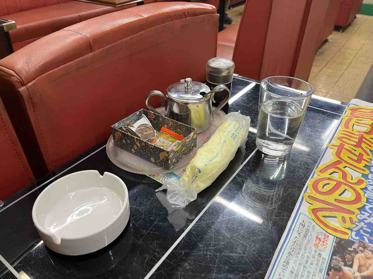 メニューは無さそうだが「コーヒーモーニングで良いですか?」と聞かれ「お願いします。」と答えスポーツ新聞をめくる。