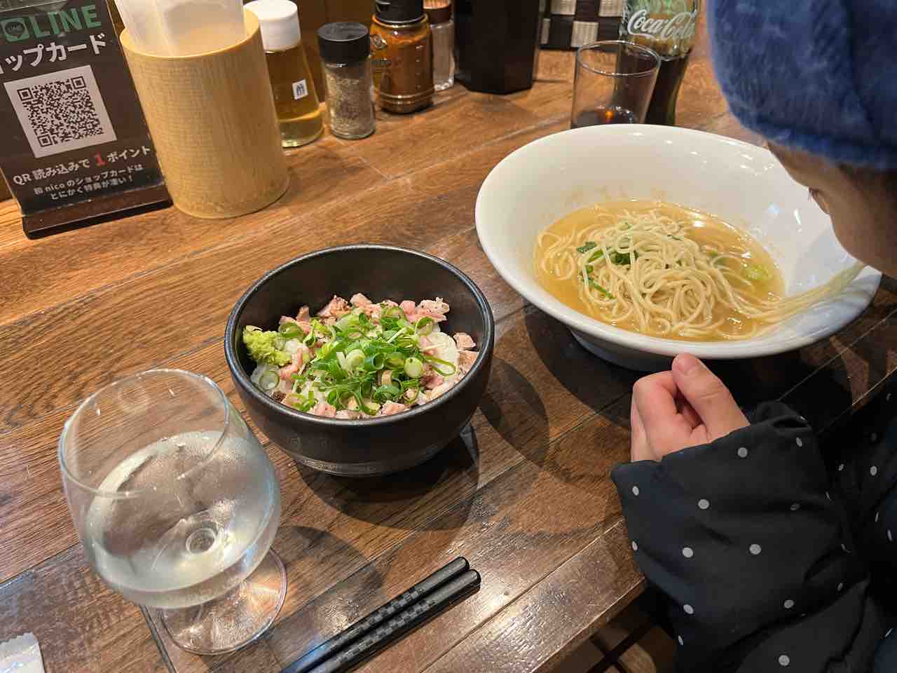 朝ラーメンセット(塩)、おまかせ日本酒@和nico202411
