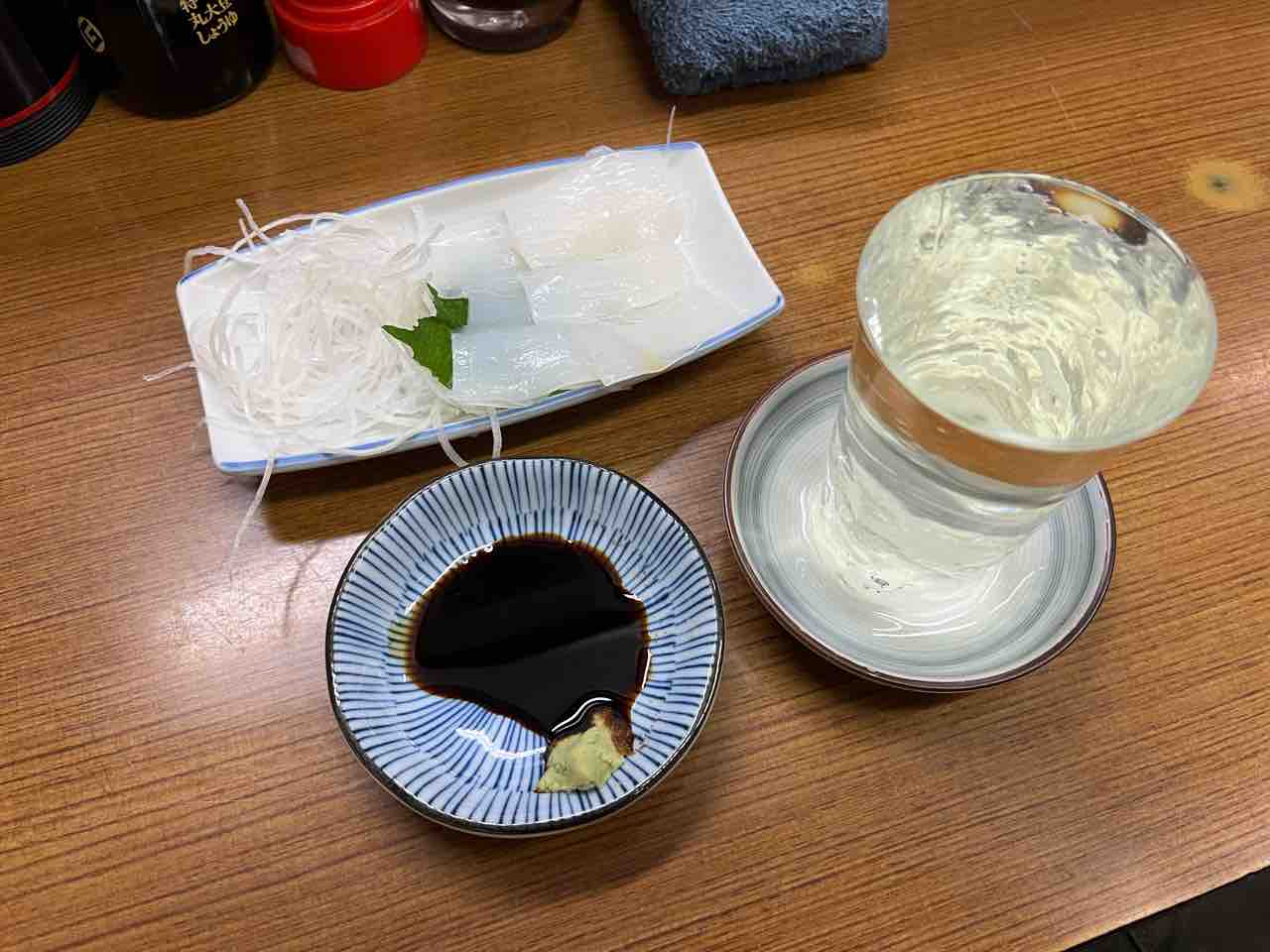 本日の刺身は烏賊に鮪ってことで、烏賊をいただく。