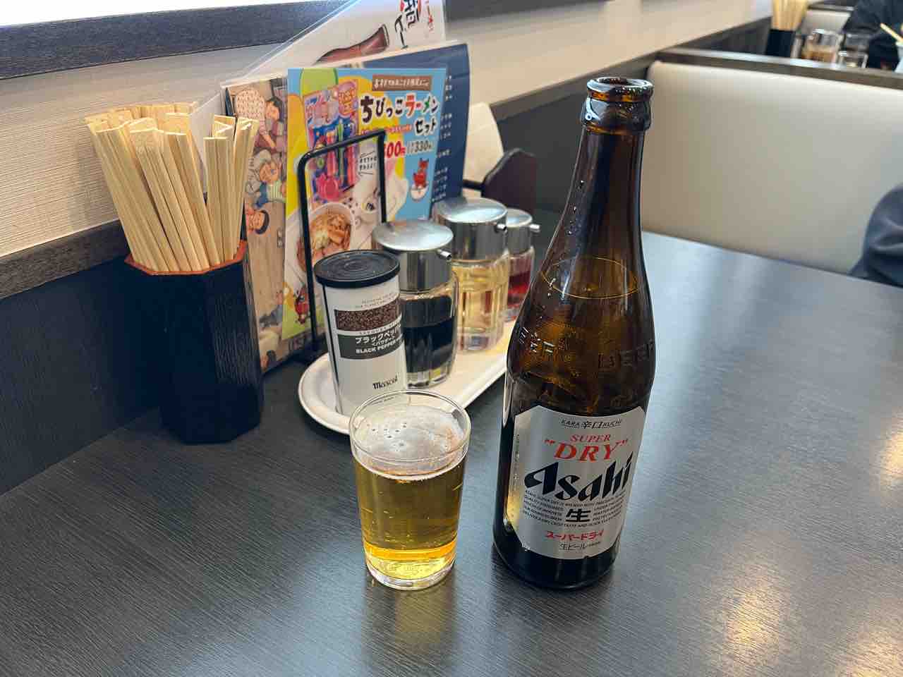 家人はいつもの喜多方ラーメンなのだが、休日のお父さんはやっぱり一杯やりたいトコロ…。