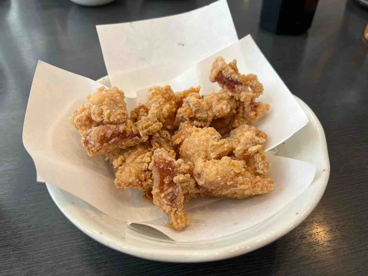 しっかり下味のついた唐揚げですね。開いているのでサクサクっと食べられます。