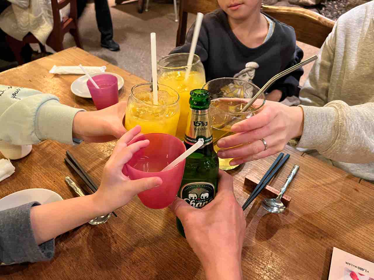 トロピカルフルーツジュースにテイクフリーのジャスミン茶。アジアンビールで乾杯!