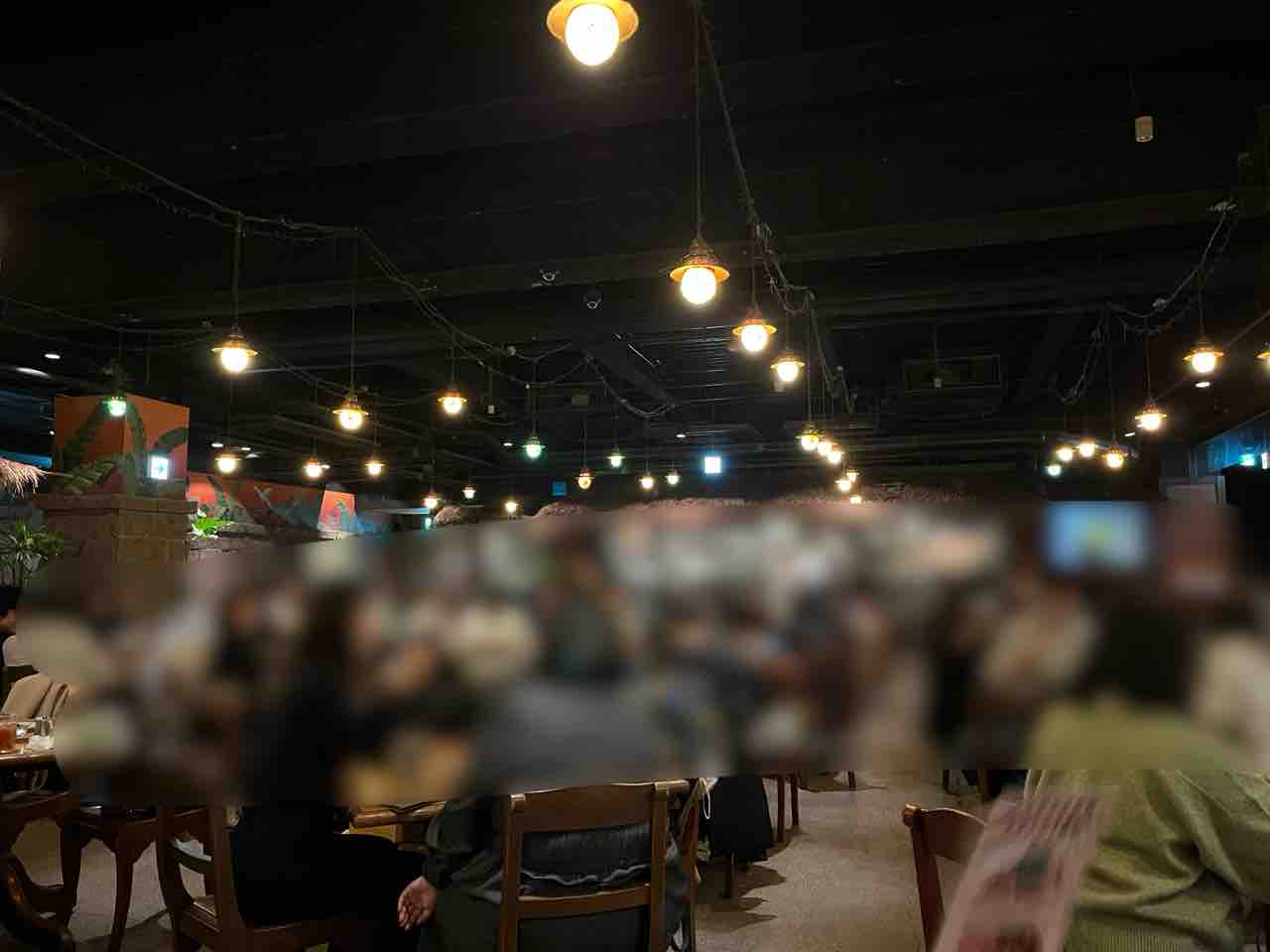 入店すると椰子の乾拭き屋根のカウンターがあり、一段下に広がる客席。
