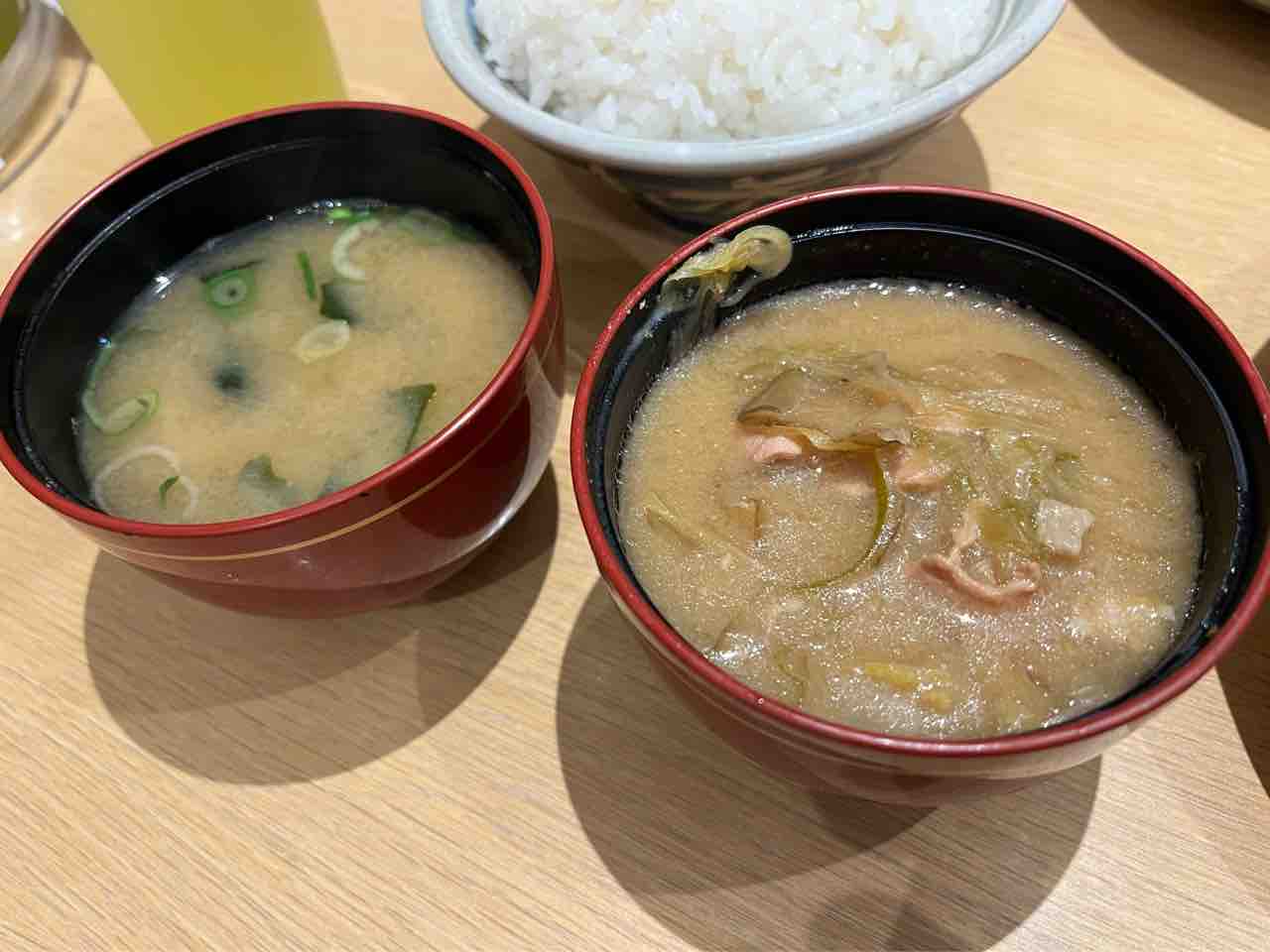お味噌汁は+150円でとん汁に変更可能。