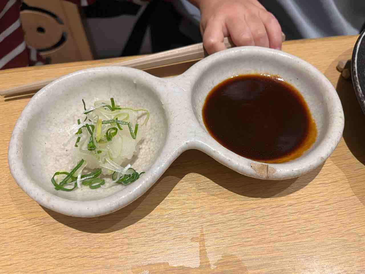 ソースが4種類。みそだれ、ソース、岩塩、青じそおろしから2種類選べます。