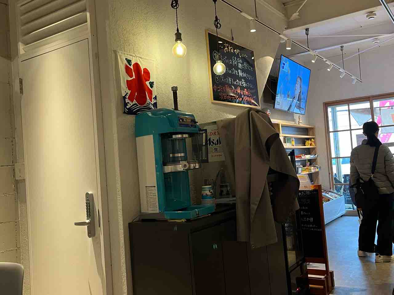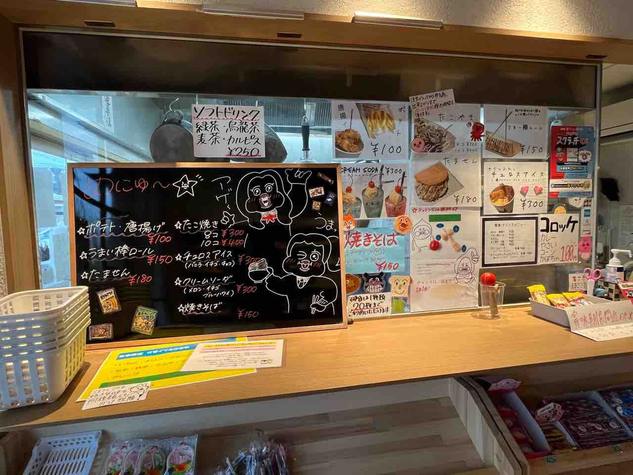 駄菓子屋コーナーを抜けると、モニターの付いたテーブルが4席ほどあります。