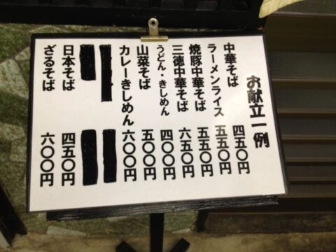 スープはうどんつゆのような醤油味(もともとうどん屋さんだからいいのか!?)、麺も学食を思い出させる。チャーシュー2枚にかまぼこ2枚、歯ごたえの良いシナチクにネギがどさっとはいっている。