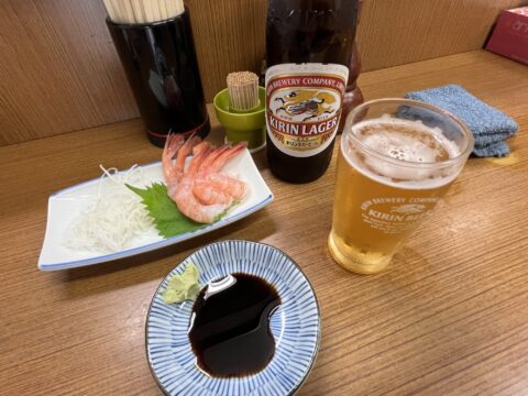 お父さんは久しぶりの朝酒を、甘エビで始めます。ああ、うまい…。