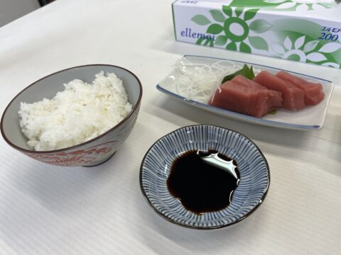 魚源食堂のお子様ランチ(鮪刺、茶碗ご飯)