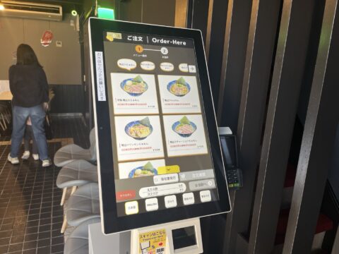 迫力のある大きなタッチパネル式の券売機。結構な数の決済方法が選択できます。