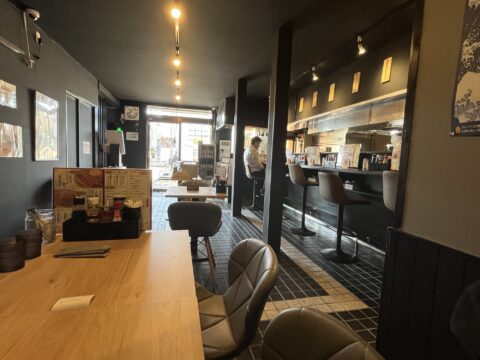 広々とした店内は、カウンター席とテーブル席があり、お一人様から家族連れまでゆっくり過ごせる空間。