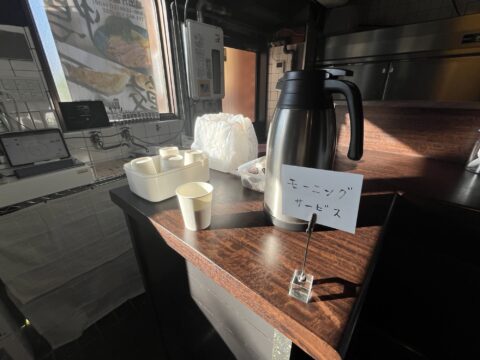 「名古屋式朝ラー」の真骨頂は、単に朝からラーメンが食べられることだけではありません。愛知の喫茶店モーニング文化の血を引く、お得なプラスアルファのサービスが付いていることです。