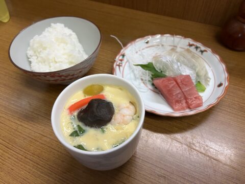 さらに茶碗蒸しを注文し、朝から昔の宴会料理みたいになっていました。
