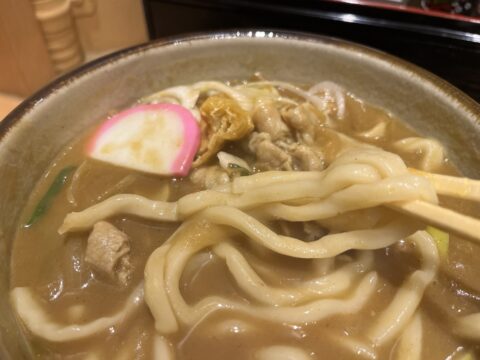 スープは、とろみはあるものの、比較的サラッとしたタイプ。甘みのある複雑な和風出汁は、流石名古屋のカレーうどんといった感じでした。