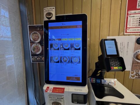 食券機で朝ラーを選びます。朝ラーは「半ラーメン丼セット」と「麺だけ一玉」の2種類。スープは醤油、塩、濃厚、生姜などから選べます。