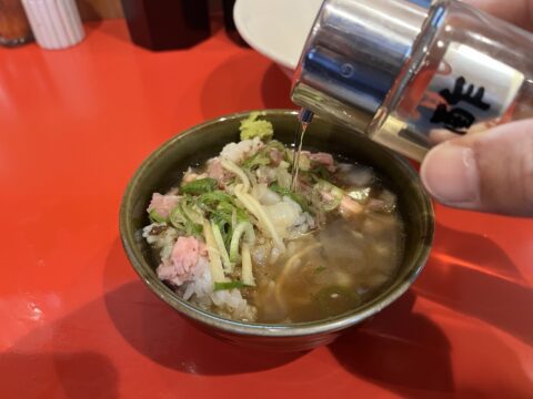 ラーメンをすすったら、当然、麺を一本か二本残してスープを投入します。