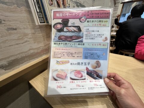私のお目当ては、やはりモーニングセット。 名古屋のモーニング文化と、市場の喧騒の中で食らう寿司、そして朝酒。この3つを一度に堪能できる「1度で3度美味しい」セットです。