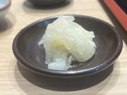 甘辛く炊かれたふわっふわの穴子に、さらにお酒が進みます。丁寧に別皿で提供されるガリも、良いアクセントになります。