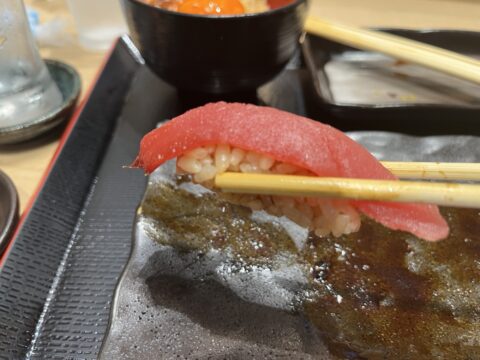 もちろん、味は本物です。凝縮された赤身の旨みに、小ぶりな赤シャリ。江戸前の原点を感じさせる味に、偏食・少食の真ん中もぺろりと平らげていました。