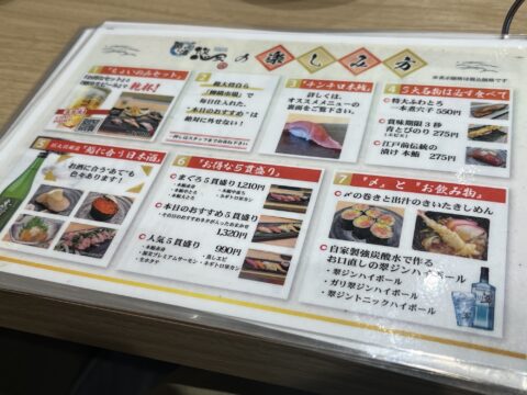 「名物煮穴子」「名物青とび海苔」「名物漬け」の三大名物の他にもメニューはたくさんあります。