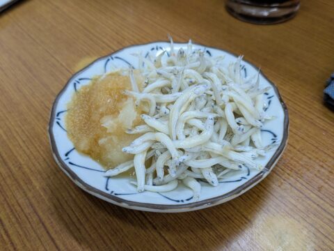 おすすめされた小女子(コウナゴ)も、この大好きな魚源食堂の三杯酢で!