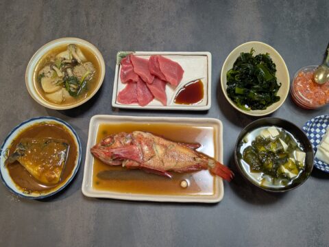 キンキの煮付けは子どもたちが頬肉を奪い合っておりました。