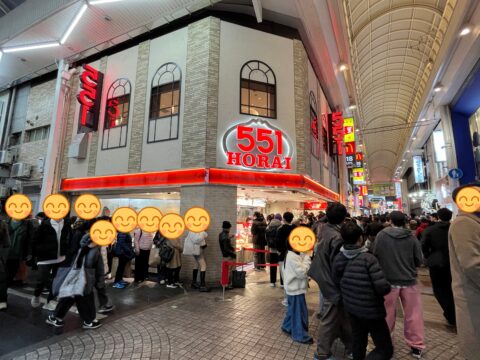 大阪に来たんだから「豚まんが食べたい!」という奥さんのリクエストで551へ向かいますが…、なかなかな大行列が…。
