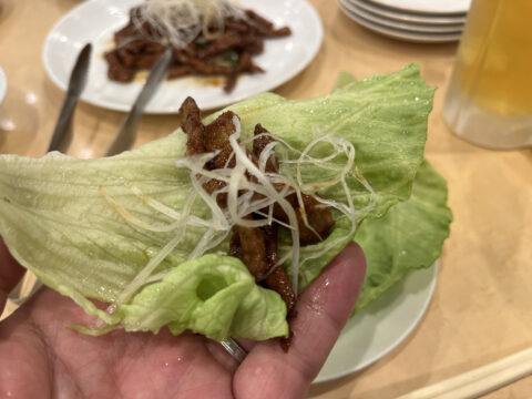 牛肉の味噌炒めレタス包み