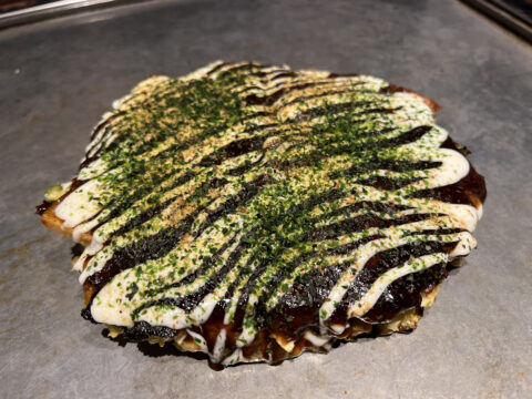 やってきたのは、ふわふわの生地に甘辛いソースがたっぷりかかった一枚。そこへ美しく網掛けされたマヨネーズ……。大阪の粉もん文化の底力を感じる、間違いのないお味です。
