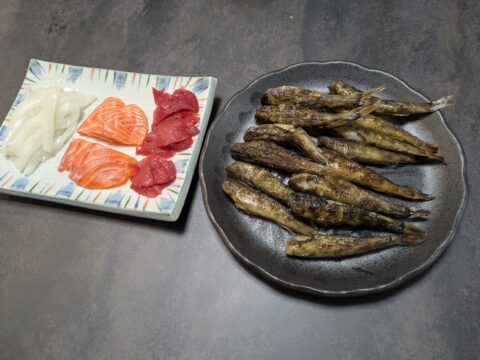 本鮪の中落ち、タスマニアサーモン(Amazon)、剣先イカと購入してしまい、我が家の夕餉は刺身パーティーとなるそうです。