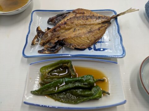 二回戦目は、最近マイブームの「鯵の開き」と「甘長の焼き浸し」。